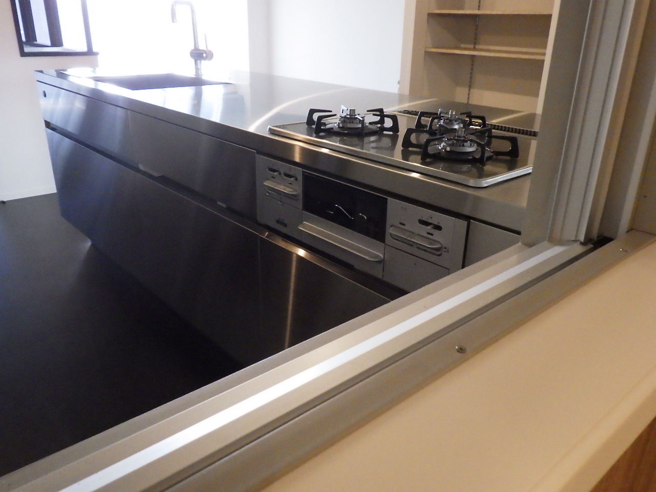 そうです。 お客様からの強い要望により取付致しました。 バルコニーからはいった風が一直線に風が抜けるように配置されているので、入浴中は自然な風を感じることができるのです! キッチンからの物の受け渡しも容易なので、ドリンクなどもらったり・料理中に会話したりと何かと楽しいことがありそうな予感がします(^^)w |