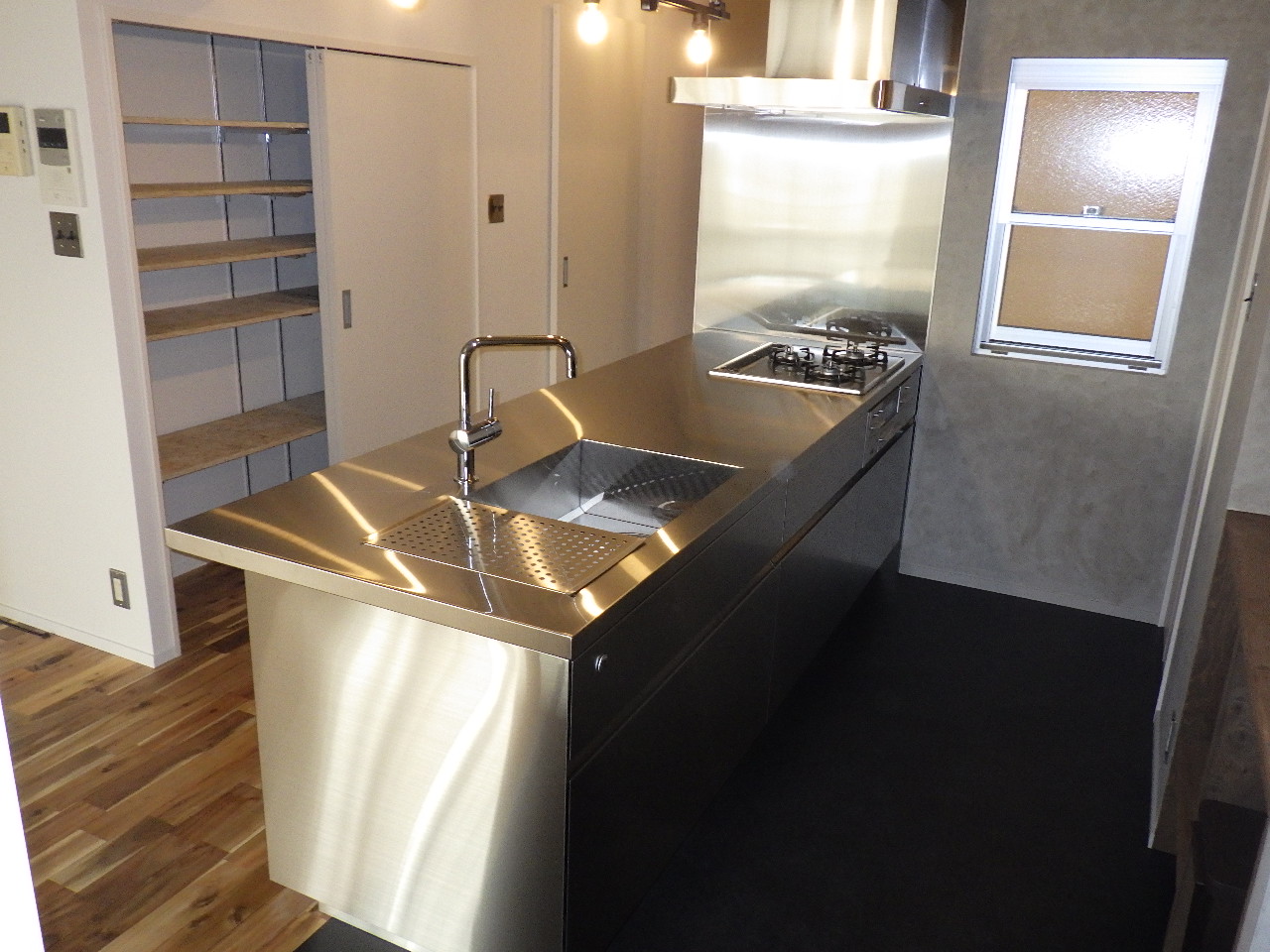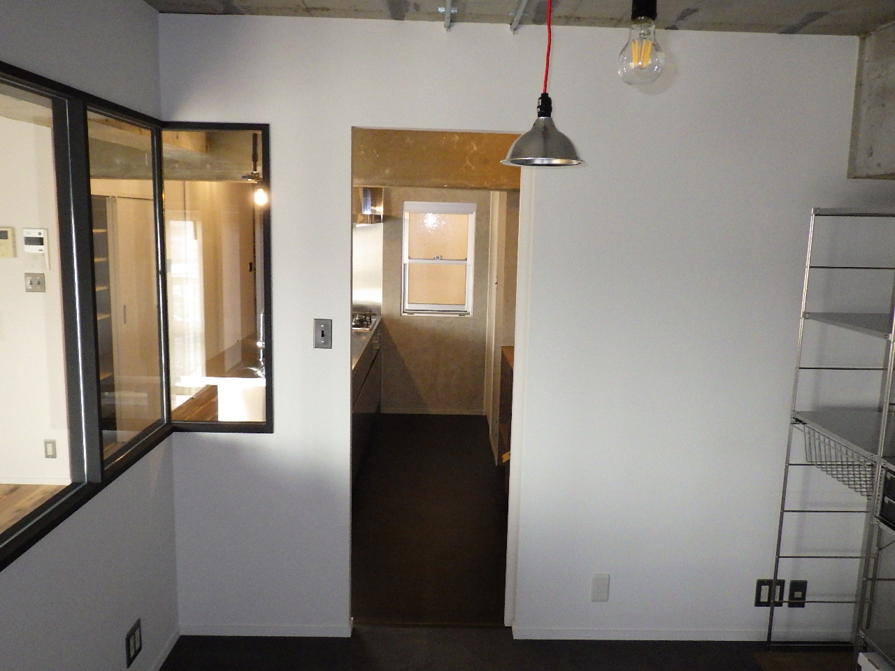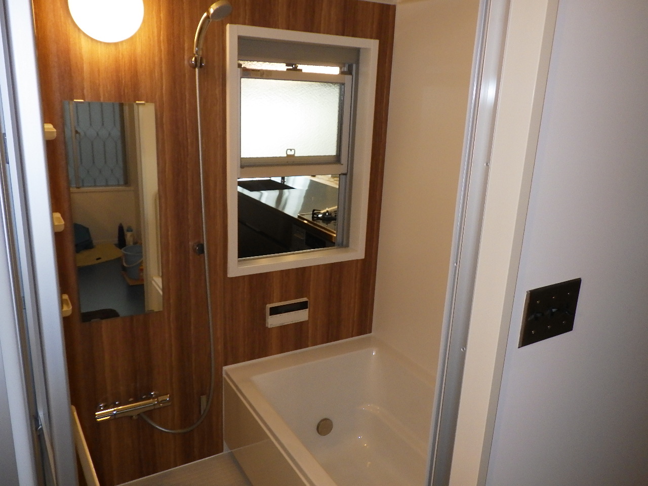 そうです。 お客様からの強い要望により取付致しました。 バルコニーからはいった風が一直線に風が抜けるように配置されているので、入浴中は自然な風を感じることができるのです! キッチンからの物の受け渡しも容易なので、ドリンクなどもらったり・料理中に会話したりと何かと楽しいことがありそうな予感がします(^^)w |